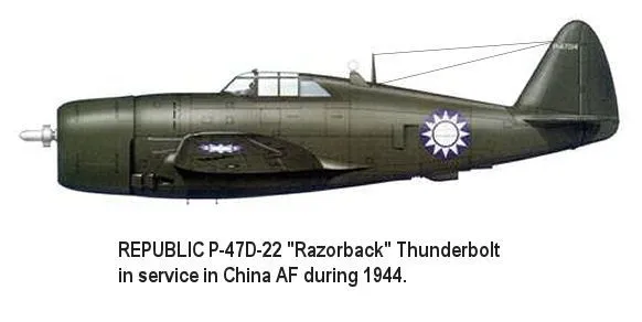 P-47D-23-RA Unit: 11th FG Serial: P-47014 Kangwan Field, Shanghai, circa 1947.