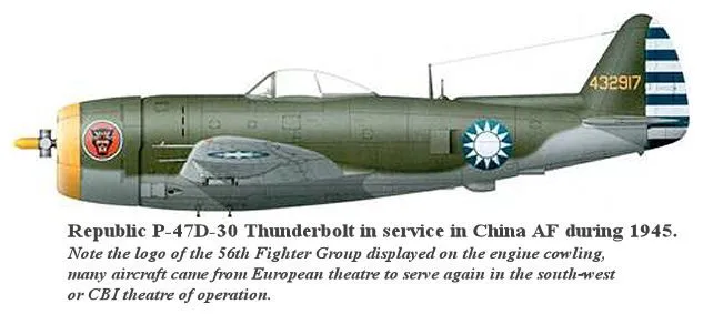 抗战最后两年(主要从 1943 年底、1944 年初开始),由美国根据《租借法案》提供给国民党空军及美国驻华第 14 航空队(飞虎队)。