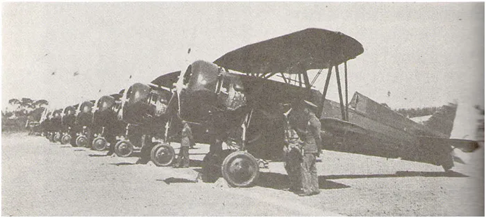 1938 年 2 月广州空战,第 28、29 中队的角斗士在南雄上空与日军九六式舰战爆发大规模空战,击落多架日机