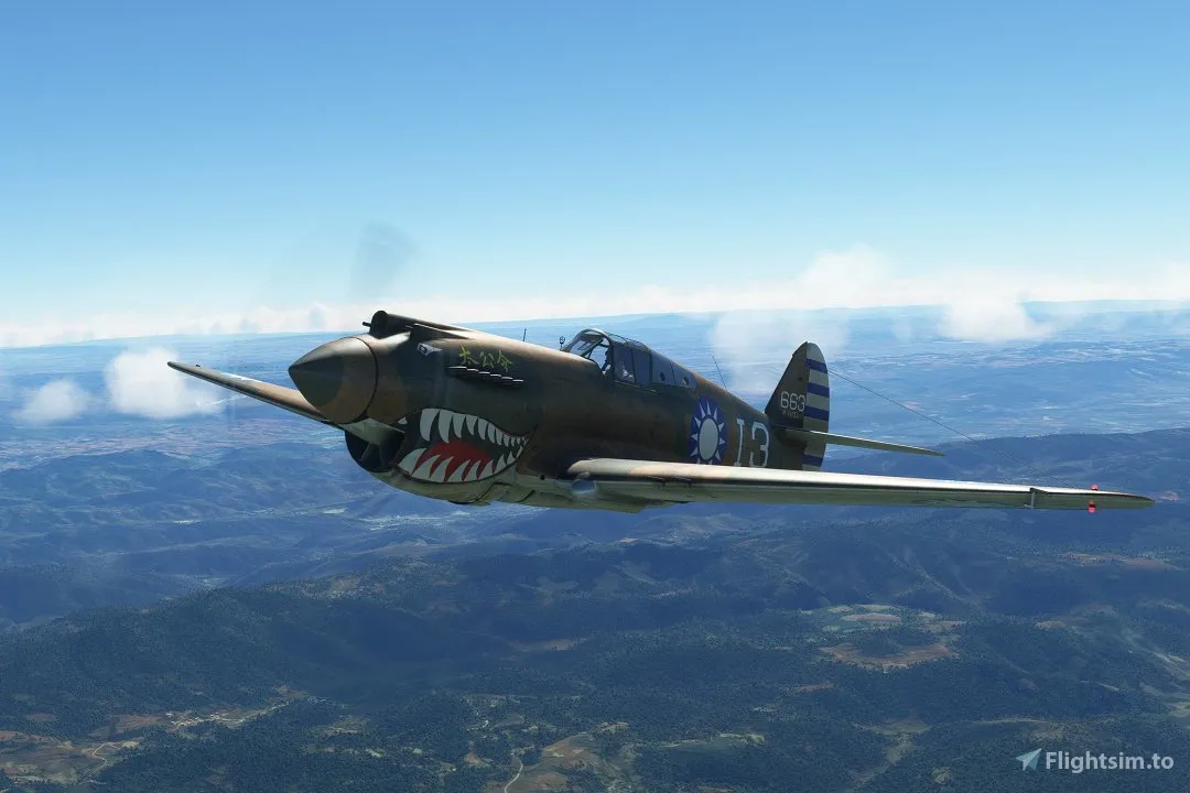 Microsoft Flight Simulator 2024 中的“太公令” 涂装 MOD,原型应该为 P-40N 而不是该 MOD 中的 P-40B